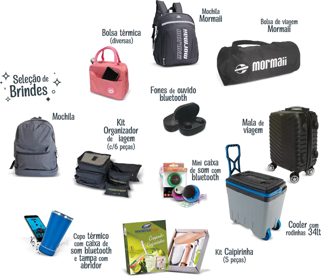 AS IMAGENS DESTE CATÁLOGO SÃO MERAMENTE ILUSTRATIVAS. NOS RESERVAMOS AO DIREITO DE SUBSTITUIR OS PRODUTOS POR UM EQUIVALENTE OU SUPERIOR EM CASO DE FALTA DO MESMO. NÃO É PERMITIDO ESCOLHER CORES OU MODELOS DE BRINDES.